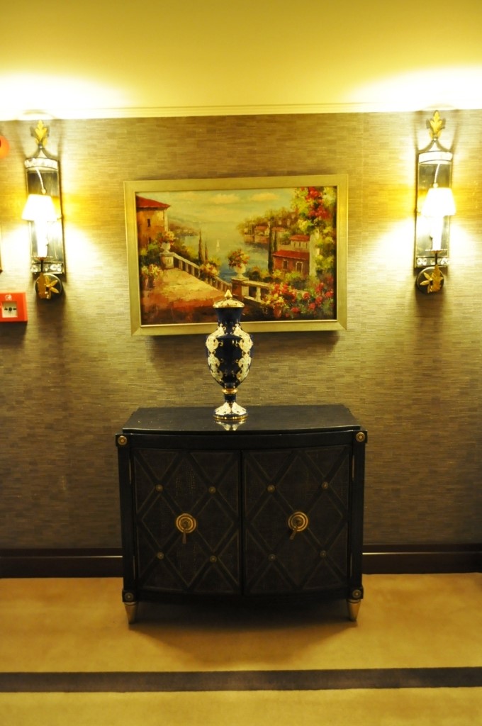 Mükemmel porselenlere otelin dekorasyonunda da sık sık yer verilmişti, özellikle de lobide ve katlardaki dresuarların üzerinde…