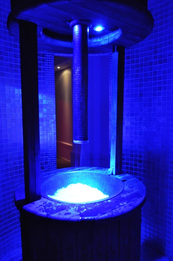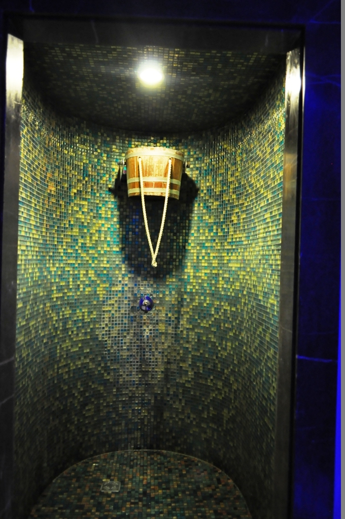 Gelelim muhteşem spa görüntülerine… Bu şok duş kovası kambala ağacından yapılmış ve içi 21 litre buz gibi suyla dolu. Sauna ve buhar banyosundan sonra kan dolaşımını hızlandırmaya bire bir. Tabii cesaret edebilene 🙂