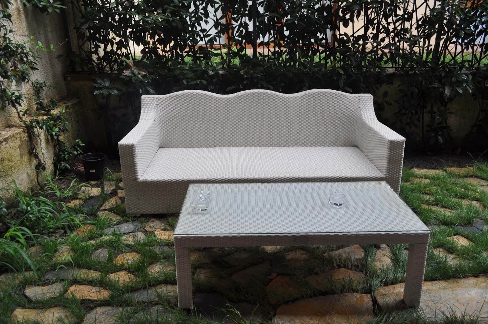 Bu odanın belki de en güzel yanı, kot farkından dolayı kendi bahçesine sahip olması. Bir odaya ait balkon değil bahçe fikri bile başlı başına güzel. Buranın mobilyaları da L’ unica’ dan. Yine yağmurdan dolayı çok sağlıklı fotoğraf alamadığımı belirtmek istiyorum, affola.