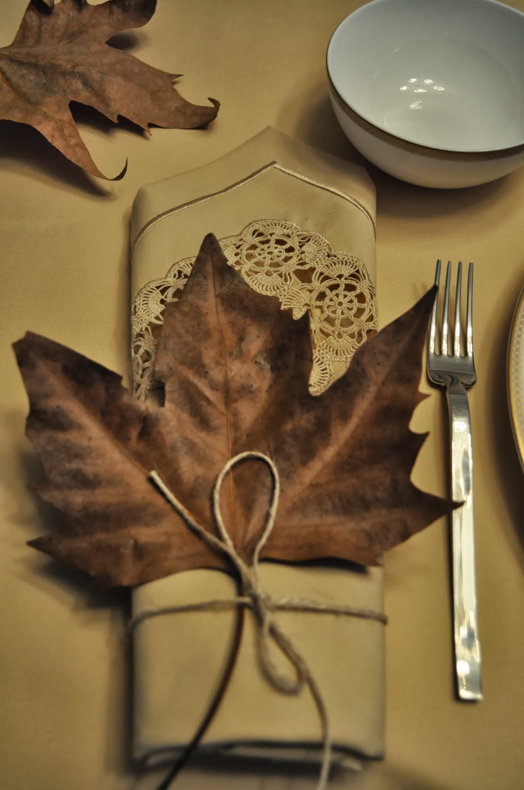 Geniş kuru yaprakları da peçetelik olarak kullanıp ince halatla bağladım. Bu arada bu örtü takımımın yeri ayrı. Anneannem annemin çeyizi için hazırlamış yıllar önce. Dantel o zamanki Yugoslavya’ da tamamen elde örülmüş. Buraya getirtilip kumaşa uygulaması yapılmış. Tatlı bej tonu ise konseptimize tam uydu.