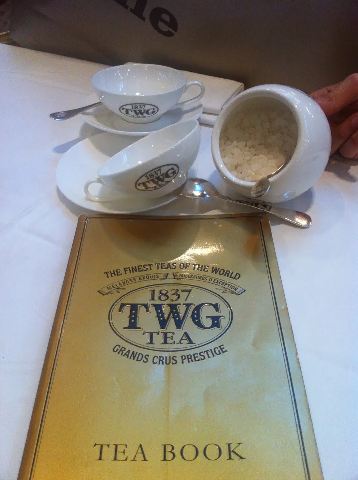 Yine epey bir gezdikten sonra beş çayı için TWG Tea House’ a uğruyoruz. Logosunun sarı rengi ve harfleri yanıltmasın, Twinings değil. 1837′ de kurulmuş bu firmanın inanılmaz sayıda çay çeşidi var ve hepsi birbirinden hoş aromalı. Hangi çayı içeceğinize karar veremezseniz orada bir görevli hiç yorulmadan yerinmeden hepsini tek tek anlatıyor, benim tercihim hafif aromalı white tea olmuştu, yine tavsiye ediyorum.