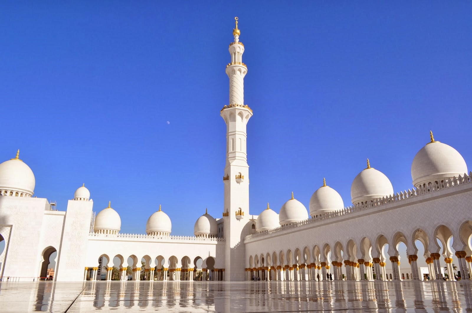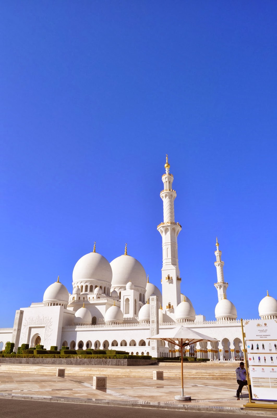 50-60 dakikalık bir yolculuktan sonra Abu Dhabi’ nin daha girişinden itibaren bol yeşil alanlar dikkati çekiyor çöl ortasında olmanıza karşın. Bunun sebebiyse buranın şeyhinin yeşili çok sevmesi ve bakımı ne kadar zor olursa olsun her türlü bitkiyi sınırları içinde görmek istemesi. Bizim istikametimiz Sheikh Zayed camii. Kesin bir dille söylüyorum ki ben bu kadar etkileyici ve ihtişamlı bir cami görmedim. Daha uzaktan belirdiğinde kendine çekiyor sizi, bembeyaz yapının öyle bir özelliği var. 82 minareli dünyanın en büyük 3. camisi bazı rekorları elinde tutuyor. Dünyanın en büyük halısı İran’ da 1200 kadın tarafından 2 yılda dokunmuş ve ağırlığı 45 ton. Dünyanın en büyük kristal avizesi de yine burada. Bu da Almanya’ da özel yaptırılmış, uzunluğu 10 metre ve çapı 10 metre. Cami 545 milyon dolara mal olmuş.