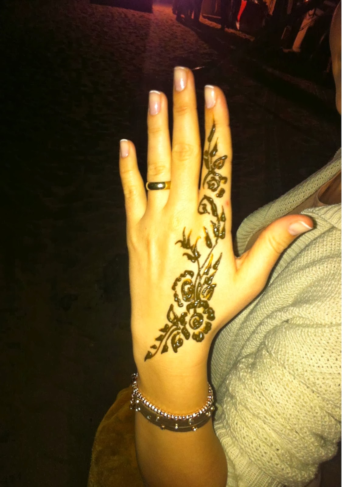 Daha yüksekçe bir tepeye çıkıp güneşi batırdıktan sonra isteyenler bir süre snowboard tahtalarıyla sandboard yani kum kayağı yapabiliyorlar. Akşam çıkan çöl ayazında ben uğraşmak istemedim ama eşimden tam not aldı, sandboard. Snowboard yapıyorsanız bunu da öneririm, incecik ve yumuşacık kumda kardan çok daha farklı bir zevk vereceği muhakkak. Bu aktivitenin devamında çölde yine biraz yol aldıktan sonra bedevi çadırına geliyoruz. Bedevi dediğime bakmayın, her şey turistik. Çöl stilinde ve içeriğinde açık büfe yemekler, dansöz ve tanoura dans (ışıklı etekler giyip dönerken elindeki desenli teflerle gösteri yapan erkekler) şovu vardı programda. Bu tanoura dansı aynı zamanda bir Mısır geleneği. Şovlardan sonra isteyen kahvesinin yanında nargile tüttürürken isteyen hint kınası yaptırabiliyor.