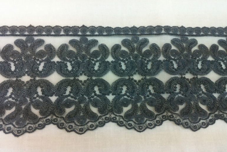 Füme rengi bu kibar motifli dantele de bayıldım, ince hatlı olduğu için özellikle İsviçre keteni kumaşlarla enfes duracaktır.