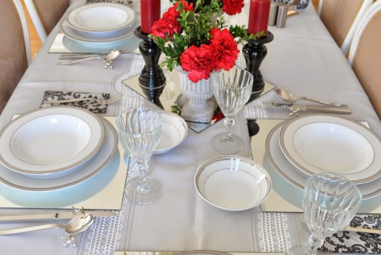 Orta dekoru olarak hemen yeni aldığım vazolarımla şamdanlarımı siyah beyaz kırmızı konseptine uydurdum. Ayna suplalarla da çok hoş bir etki yarattı.