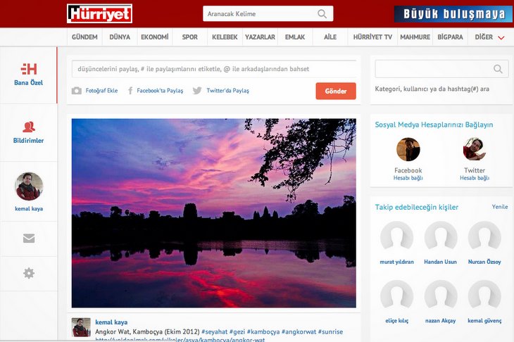 Hurriyet.com.tr, bu konuda en yenilikçi online haber sitelerinden biri olduğunu tekrar ispatlıyor. Dünyada bir ilki gerçekleştirerek, sosyal tabanlı bir haber sitesine dönüşüyor. Artık, ilgilendiğimiz kategorileri işaretleyerek, kendimize özgü bir hurriyet.com.tr oluşturabileceğiz. İlgilenmediğimiz kategorilerin filtre edildiği ve sadece ilgi alanımıza giren içeriklerin listeleneceği bir sayfa bana gayet cazip geliyor.