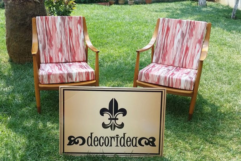 Bu antika berjerler ev sahibimiz tarafından yazlıkta değerlendirilmek istendi. Mekan yazlık olunca berjerin klasikliğini bir de kumaşla arttırmak istemedim açıkçası ve bahçede de kullanılacağı için daha modern bir görünüm yakalamak oldu isteğim. Bunu da trendini ısrarla sürdüren dalgalı soyut desenleri yine bir başka sezon trendi renk olan mercanla birleştiren bu kumaşla elde ettim.