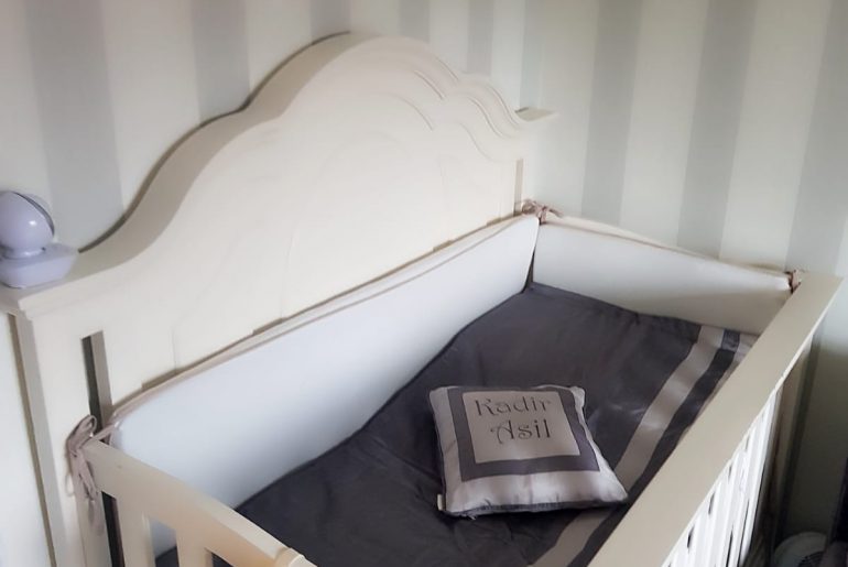 Minik Kadir Asil de bu özel bebeklerimden. Ablalarına yaptığımız bumper ve yatak örtülerinden sonra sıra kendisinindi. Odanın aynı kalan mobilyalarına karşılık tüm ev tekstillerini yeniledik. Perde ve yatak örtüsünde aynı kumaşları ve tasarımı kullandık. İsim nakışlı yastığı ile de taçlandırdık 🙂 Aramıza hoşgeldin minik prens! Güzel günlerde kullanmanı diliyorum.