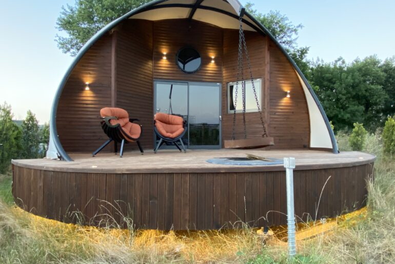 Ahşap olması suyla teması nasıl oluyor gibi fikirleri getiriyor aklında. Onda da çok iyi bir teknik detay var. Sibirya çamı kullanıldığı için parçalara üretim aşamasında yağmur yediriliyor ve bu işlemden sonra su çekme ve kabarma olmuyor. Konteyner evlerden daha ferah ve kullanışlı bir alan sunan bu tiny house’ un 45 m2 iç, 28 m2 veranda alanıyla keyifli kalabalıklara da ev sahipliği yapabilirsiniz. Yukarıdaki hamak iptal edilip yatağa dönüştürülmek istenirse de ilave 15 m2 daha kazanmış oluyorsunuz.