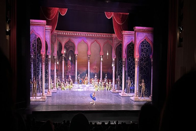 Gelelim La Bayadere’ e… Ludwig Minkus‘ un bu değerli eseri, AKM sanat hayatına kapanmadan önce sergilenen son eserlerden biriydi ve şimdi anlamlı bir dönüş yaptı. Teknik olarak zor bir oyun olduğunu belirtmem gerekir. 3 perdeden oluşan bu eserin sizi Hindistan topraklarına bale aracılığıyla götürmesi çok çok hoş elbette. Bizim izlediğimiz akşam akışta şöyle bir değişiklik de vardı. Solor rolü için ADOB‘ dan İlhan Durgut ve dünyaca ünlü, ödüllü, İtalyan balerin Petra Conti Nikiya rolündeydi. Gamzatti rolünde ise Melike Manav‘ ı ziledik. Üçü de gerçekten çok iyilerdi. Bununla birlikte kalabalık dans edilen balerin gruplarında yaşanan senkronsuzluk, hem bir balesever hem de kızından dolayı bale gözü ayrıca gelişmiş biri olarak göz tırmalıyordu diyebilirim. Bu durum biraz şaşırttı açıkçası. Ancak gerek dekorlar gerek kostümler çok etkileyiciydi ve elbette hikayenin Hindistan’ da geçiyor oluşu alışageldiğimiz kostümlerin de bir parça dışına çıkararak gözümüze tatlı sürprizler yaptı.