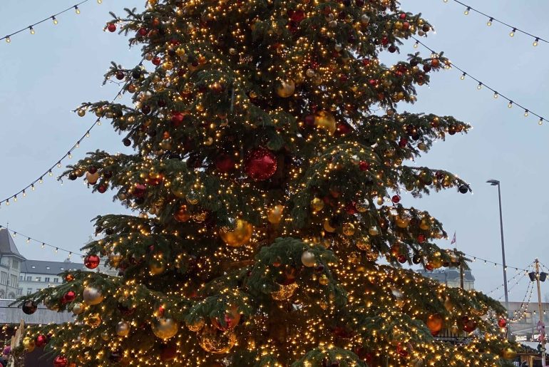 Burası da canlı ama küçük bir alan. Hemen yanında ufak bir noel pazarı var ama daha büyüğü, caddenin sonunda, Obere Altstadt‘ da göreceğiniz noel pazarıdır. Meydana yakın alanlardan birinde çok hızlıca bir şeyler atıştırıyoruz çünkü gün batmadan Montreux’ de olabilmemiz için (sebebi var) biraz seri hareket etmemiz gerekiyor.