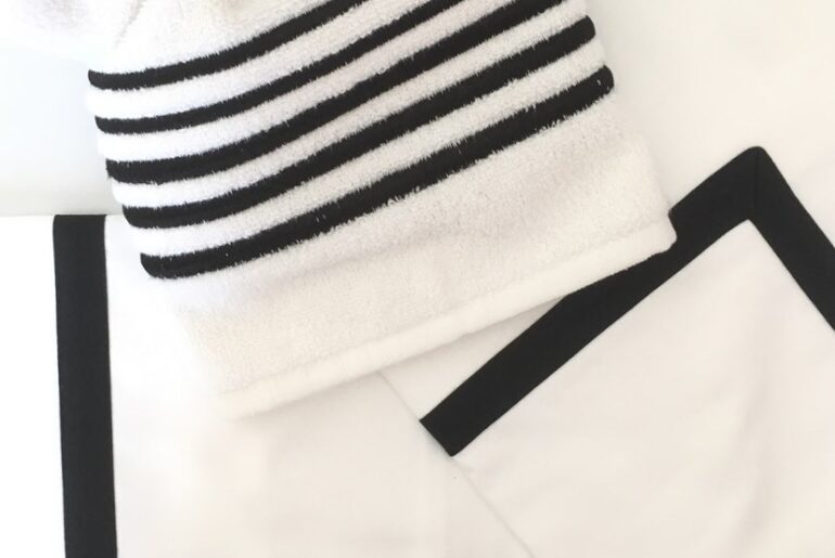 Pek çok model neticesinde siyah biyeli olarak çalıştığımız bu zamansız modelde karar kıldık ve takımları bu modelde ürettik. Kumaş olarak 150 tel pamuk saten tercih edildi. Bu arada havlu siparişi de mevcutken iki farklı tasarım çalıştık. Bir grup nevresim takımıyla uyumlu çizgili diva havlular oldu, diğerleri de BE olarak baş harfleri nakışlı şekilde üretildi. Hepsini mutlu günlerde kullanmasını dileriz. Ve fakat yazım burada sona ermiyor.